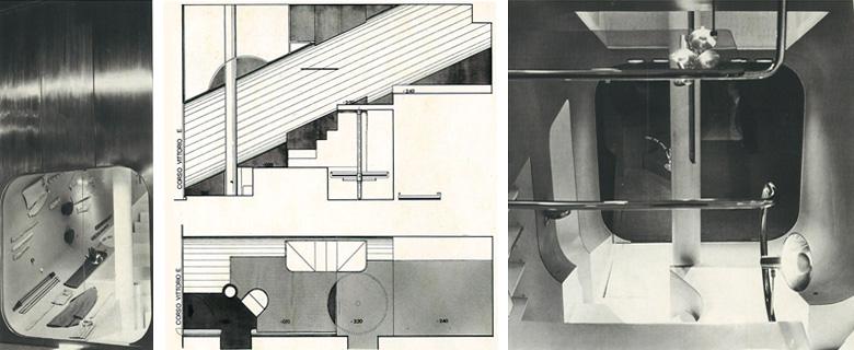 Un piccolo ambiente largo 2,25 metri, profondo 7,30 e alto 4,50 metri, ha portato alle realizzazione di un grande tubo di sughero inclinato, sezionato dalla lastra d’acciaio traforata che conclude il negozio sulla strada e scavato lateralmente dagli spazi necessari per la vendita. La disposizione dell’ambiente fa sì che tutto il negozio diventi vetrina visibile dall’esterno. La superficie inclinata del tubo, rivestita di sughero, è tutta sfruttabile per l’esposizione.