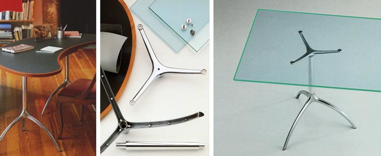 alias.designIl progetto dei tavoli con-pone un treppiede in moderna pressofusione di alluminio, regolabile in altezza con una ghiera zigrinata, e piani di diverse forme e dimensioni, realizzati con materiali più tradizionali, come l’ardesia, il vetro, il legno di faggio con inserto in linoleum, o il massello di ciliegio. Penso che l’utilizzo di tecniche tra loro distanti nel tempo, l’uso di materiali contrastanti nelle prestazioni, nell’aspetto e nella memoria, contribuisca a modificare una situazione di stallo progettuale che porta al manierismo e all’autocompiacimento.