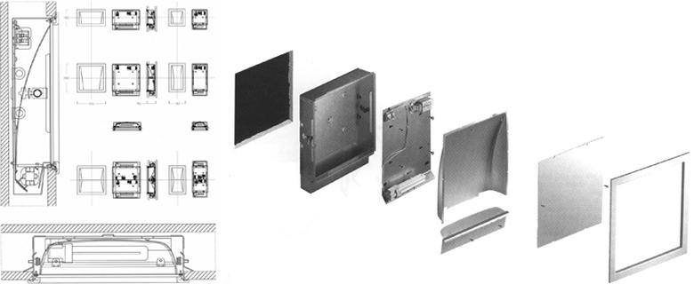 con Alberto Medaù luceplan.itSistema di elementi modulari a incasso disponibili in una serie di varianti di luce, geometrie e colori, in sintonia con le esigenze della progettazione architettonica. Adatte a qualsiasi tipo di parete o soffitto, con ingombro in profondità molto ridotto, si montano facilmente e in sicurezza. I riflettori consentono di ottenere effetti di luce diffusa o direzionata, o una combinazione delle due, posizionando opportunamente le lampade nell’alloggiamento superiore e inferiore della tasca. E’ possibile miscelare luce di diverse sorgenti luminose. Sono disponibili schermi opalini, segnaletici, grigliati.