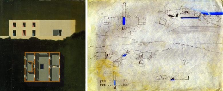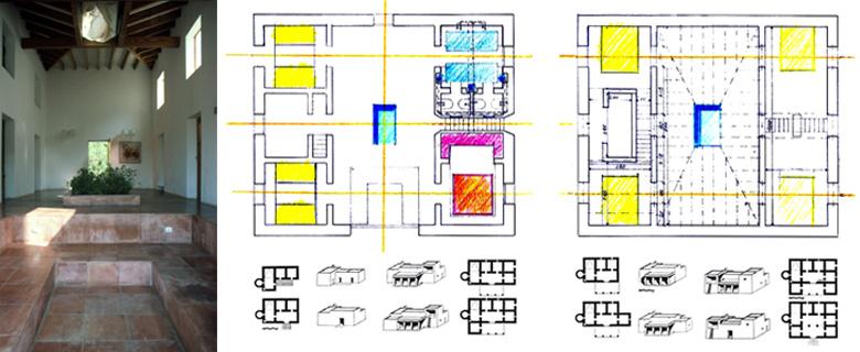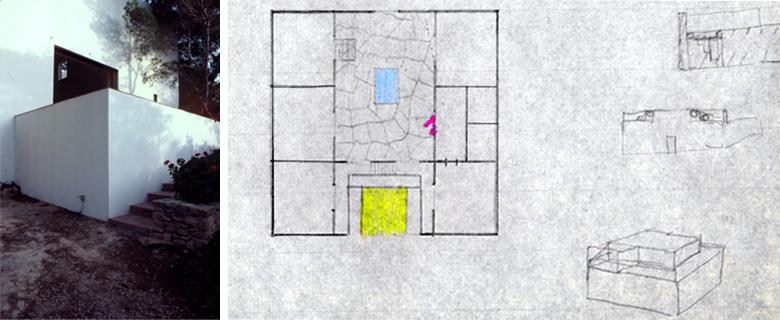 Situated in the pine-wood of Formentera, this holiday home recalls the Ibizian traditional architecture, built as aggregation of square modules, and combines it with the characteristics of the Mediterranean home (from the Egyptians through the Greeks up to the Romans). The house is set on a 2-storey central layout: sleeping rooms, bathroom and kitchen overlook the central double-height living room. Furniture is reduced to the minimum and replaced by wall niches, steps between flooring at different levels and sliding windows that hide in the walls.