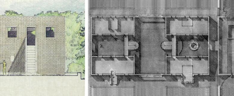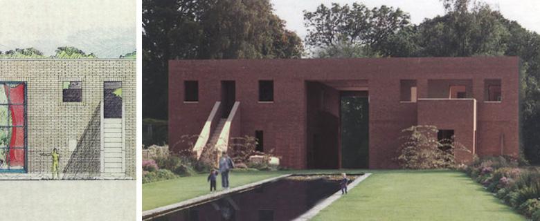 In the hot and sunny plain around Bologna, this villa and its garden recall the typological rural building of the emilian area and combines it to the characterics of mid-oriental palaces and gardens. The layout settles on a double pathway that is also axis of simmetry. Lengthwise: entrance, access courtyard, passing-through double-height living room, sleeping area roofed patio. Crosswise: front garden with small basin and lawn parterres, passing-through living room, on the back orchard and kitchen garden.