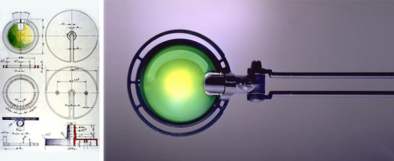 con A. Medaù luceplan.itCompasso d’Oro Selection 1987 / The inimitable first example of a new type of spring lamp having miniaturized dimensions. Manoeuvrable, smooth and precise in its movements, solid and stable. Its light can follow the user where it is most needed. Equipped with a 35W/12V halogen bulb, its characteristic is the integration of electric cable and structure. Metal parts in die-cast aluminium, adjustable hinges in reinforced nylon, supporting ring in rynite, parabolic reflector either in aluminium or in moulded glass, anti-UV rays protection glass. Table, floor and wall version.