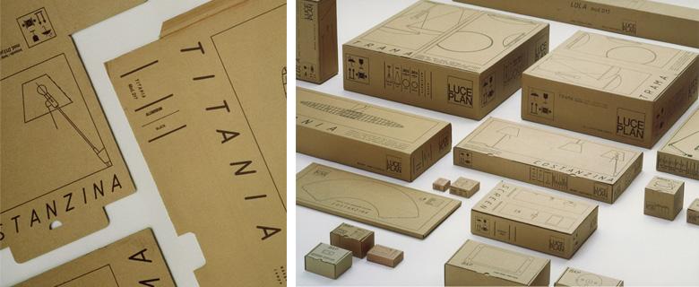 luceplan.itA well balanced composition of drawings of lamps in plan and section, of letters, abbreviations and symbols, wrap on the six sides the boxes for Luceplan products. The penstroke design marks the raw havana paperboard surface in a way that is decorative and functional at one time, never the same in detail but consistent and recognizable in the whole.