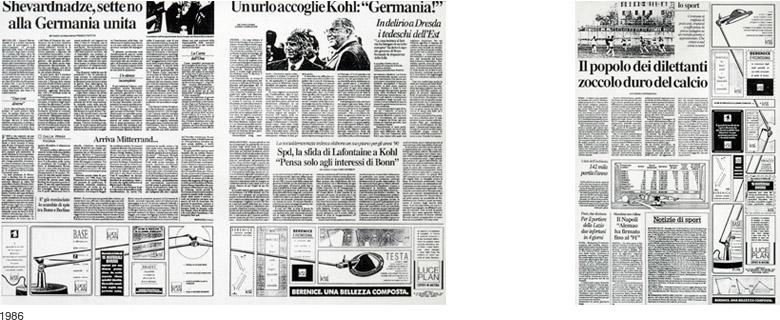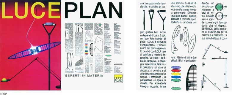At Luceplan the advertising for the lighting products shows a firm where design is not an element to be added to business, but the result of continuous exchange of information among the departments. There is a strong coherence that binds design, production and communication together.