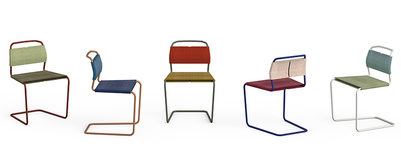 Per quanto riguarda la struttura utilizzando la sperimentata tipologia della seduta “cantilever” e sfruttando le attuali avanzate tecnologie di trafilazione che ne aumentano la resistenza e la flessibilità si è potuto ridurre al minimo la sezione ed il peso del tubo in acciaio ed eliminare i traversi in corrispondenza della seduta. Per quanto riguarda la seduta e lo schienale, utilizzando la tecnica dell’accoppiatura e della cucitura si è messo a punto un resistente set di due “vestiti tubolari double face” formati da due panni e da un inserto in tessuto elastico. La conformazione del “vestiti tubolari” e della “struttura” permettono il semplice infilaggio e sfilaggio della seduta e dello schienale nelle varie fasi di lavorazione, di movimentazione e di eventuali successive manutenzioni.